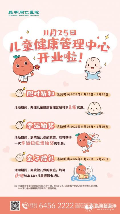 为了回馈家长们的支持,昆明同仁医院儿童健康管理中心也给大家准备了诚意满满的开业福利,家长们不可错过哦~