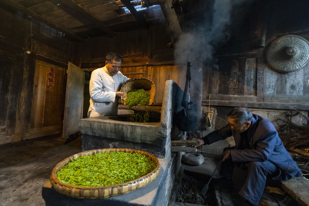 3月31日,制茶师(左)在四川省雅安市蒙顶山制作绿茶“蒙顶甘露”。新华社记者沈伯韩摄