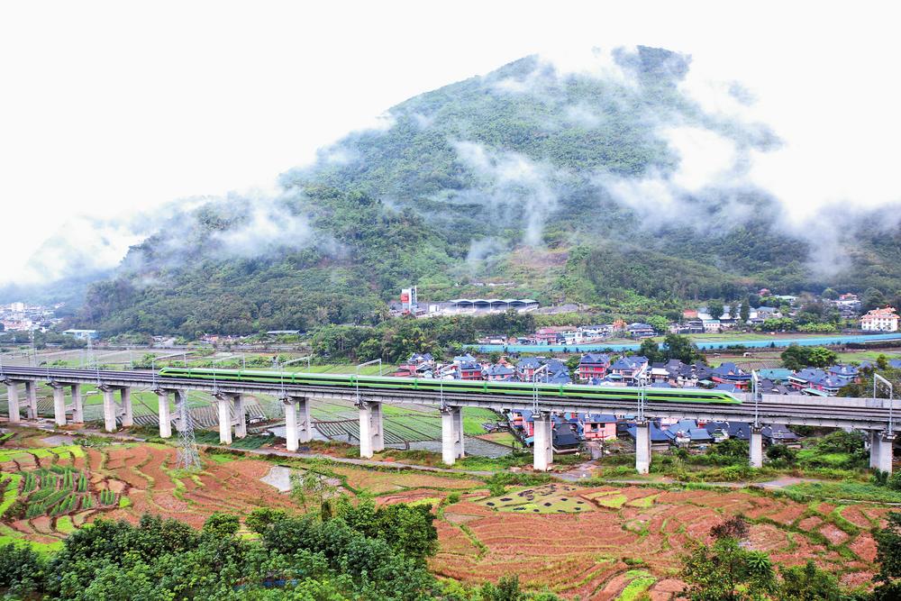 开往磨憨的列车途经勐远村寨