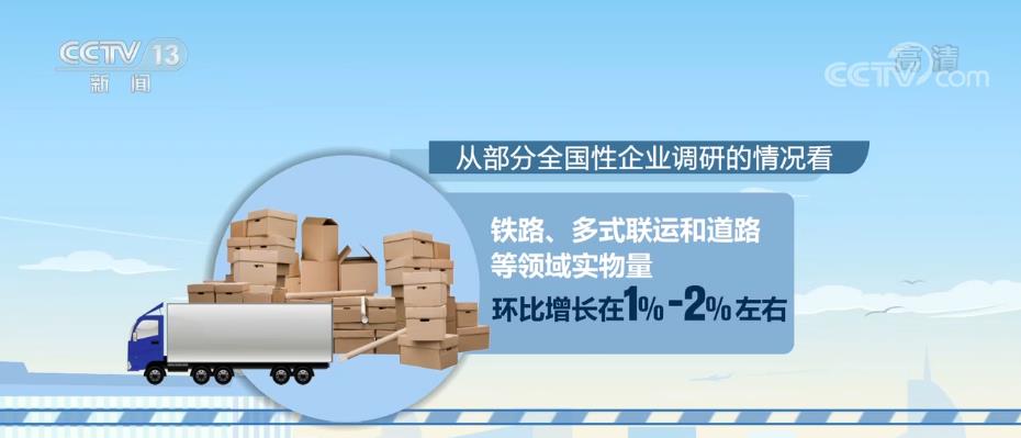 总体来看,11月物流行业继续保持较强供给能力,物流实物量增长稳定。从部分全国性企业调研的情况看,铁路、多式联运和道路等领域实物量环比增长在1%—2%。水运领域,散货实物量环比增长约2%,集装箱联运实物量环比增长约5%,电商快递业务实物量环比增长则在4%—6%之间。