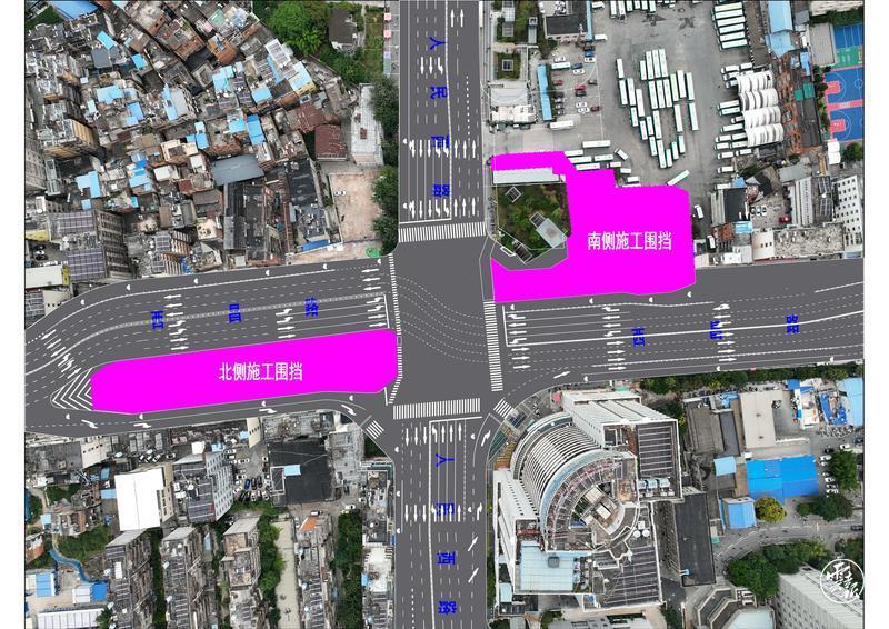 其中,西昌路南口围挡位于西昌路东南侧,临近潘家湾站A号口和公交车潘家湾停车场,围挡实施后,该范围内西昌路双向保证7条机动车道+2条非机动车道,其中北向南2条直行车道+1条右转车道+1条左转车道+1条非机动车道,南向北3条直行车道+1条非机动车道。路口设置1条东西走向斑马线供市民通过。本期围挡施工预计持续时间576天(2022年12月3日至2024年6月30日)。