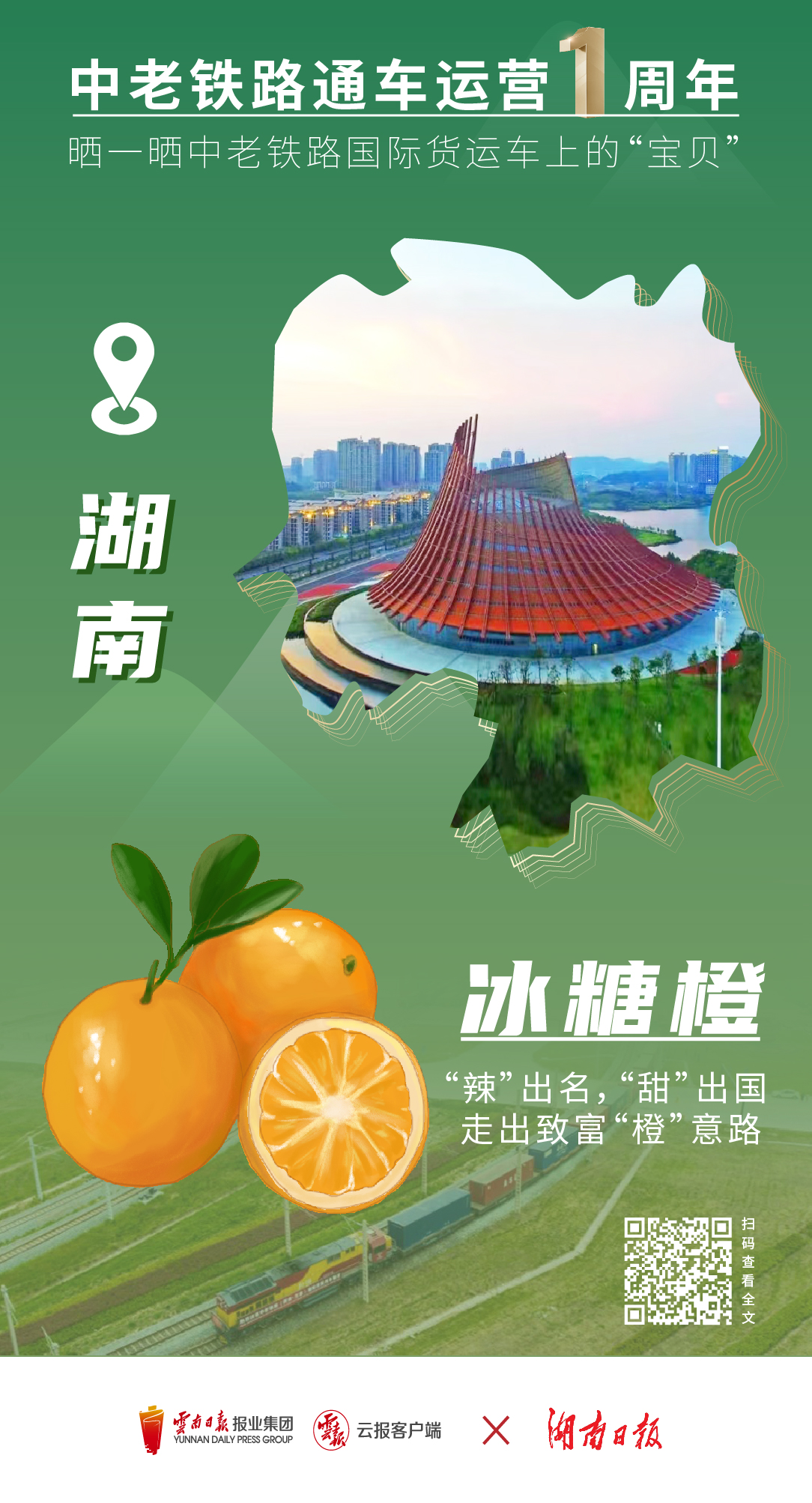 2022年1月6日,湖南首趟中老铁路国际班列发车,10万公斤冰糖橙随班列销往东盟。降低物流成本、提高果农收入,中老铁路国际班列为推动湘西地区乡村振兴提供了新的动力。湖南国际货运班列也因此形成了辐射联通东、西、南、北四个方向的国际物流通道。