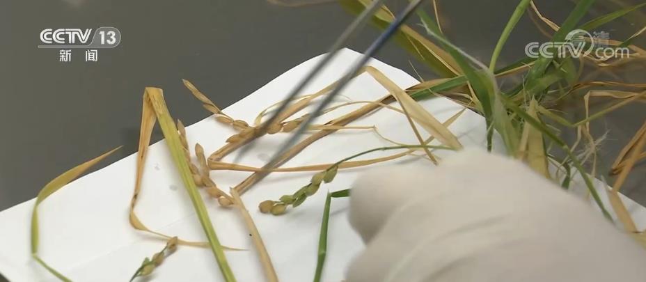 总台央视记者 张春玲:在中科院空间应用中心,实验人员正在对从太空返回的植物种子进行相关处理。他们要及时的进行分解和化学固化处理,在他们面前所摆放着这次太空中三粒植物种子收获的多株稻穗,可谓是硕果累累。