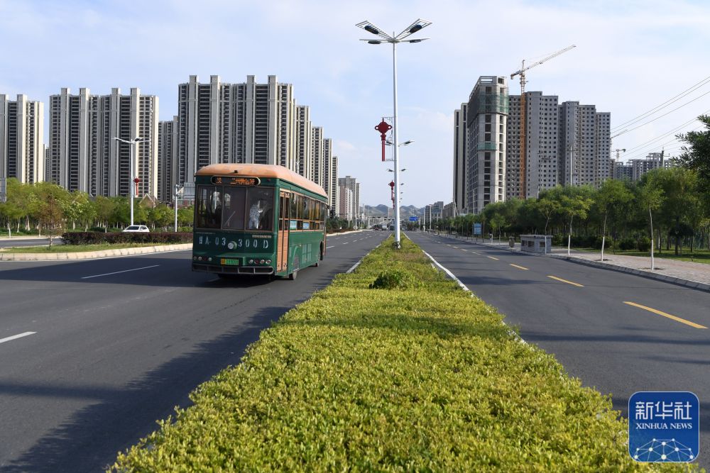 一辆新能源公交车行驶在兰州新区(8月9日摄)。新华社记者 陈斌 摄