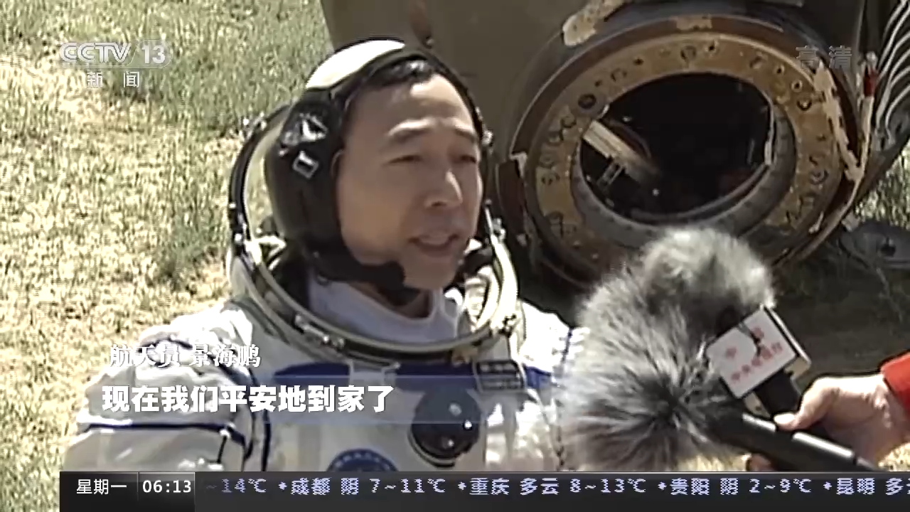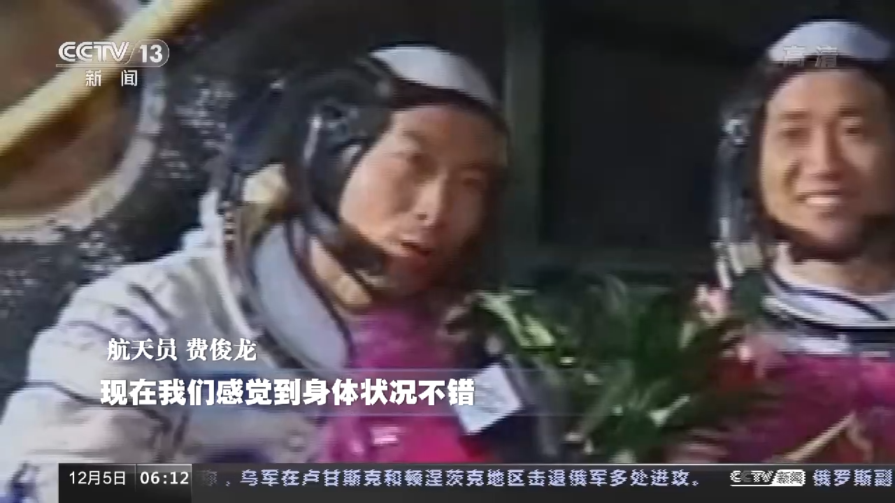 航天员 费俊龙:舱内的生活工作环境很好,现在我们感觉到身体状况不错。