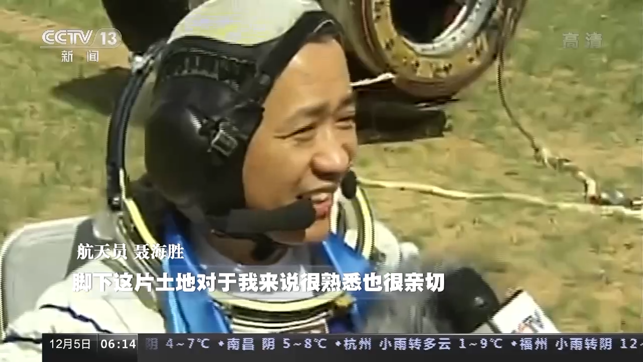 航天员 聂海胜:脚下这片土地对我来说很熟悉也很亲切,回家的感觉真的好。