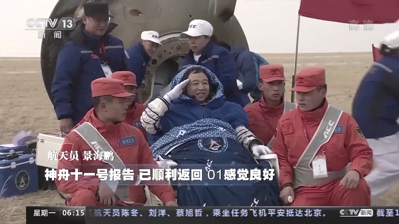 航天员 景海鹏:神舟十一号报告,01感觉良好。
