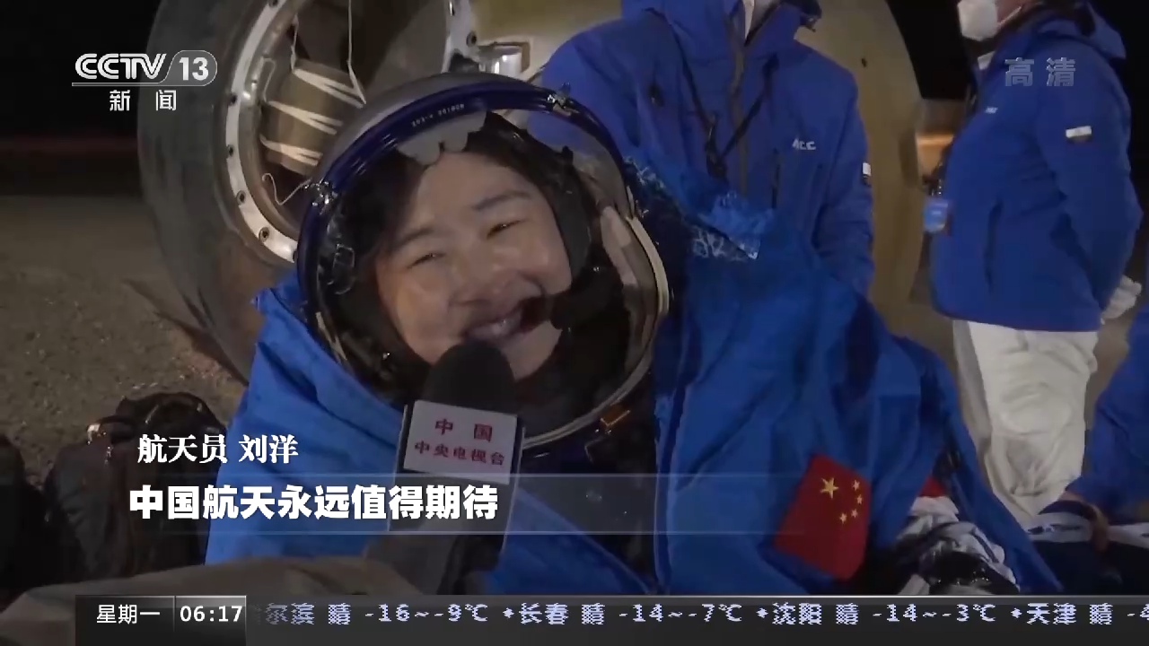 航天员 刘洋:回到祖国的怀抱很踏实很安心,中国航天永远值得期待。