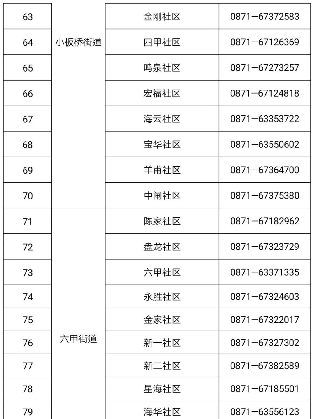 街道 | 拓东 街道 | 0871-63170655 | 13629493983 | 24 小时 | |