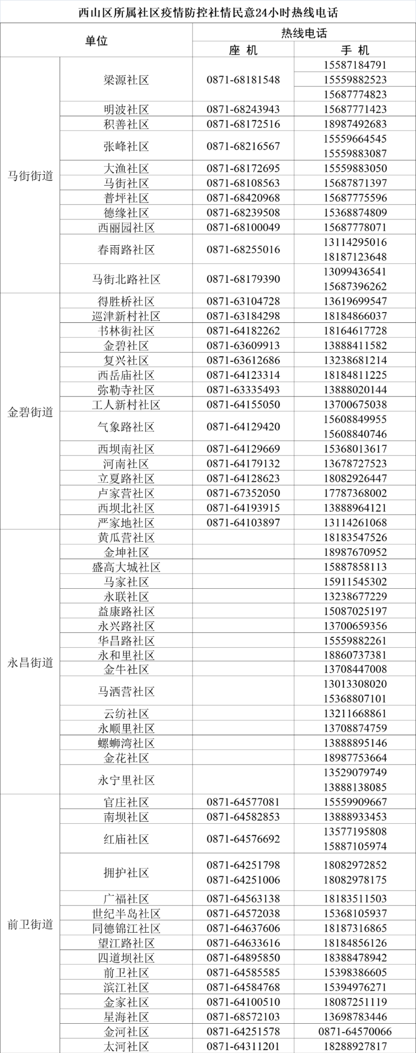 区疫情防控指挥部:0871-67476974,0871-67427030。