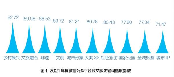 通过对微信平台2021年度涉文旅关键词的热度分析发现,乡村振兴、非遗、文创、城市形象、红色旅游、城市ip等词,被越来越多地关注和提及,在“智慧+”之外,“文化+”获得更多关注(见图1)。值得注意的是,发布相关内容的媒体、政务类账号占比约30%,表明相关诉求均在增强。而网民对智慧城市发展的评价情况显示,26%的网民认为智慧城市发展将有助城市文化气质提升。