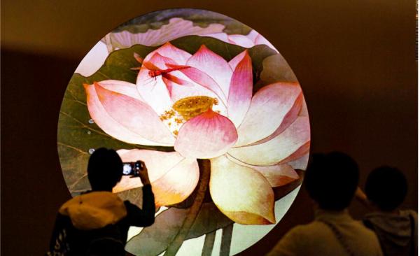 2019年10月5日,北京故宫博物院,游客正在参观由数字技术呈现的中国古代绘画。