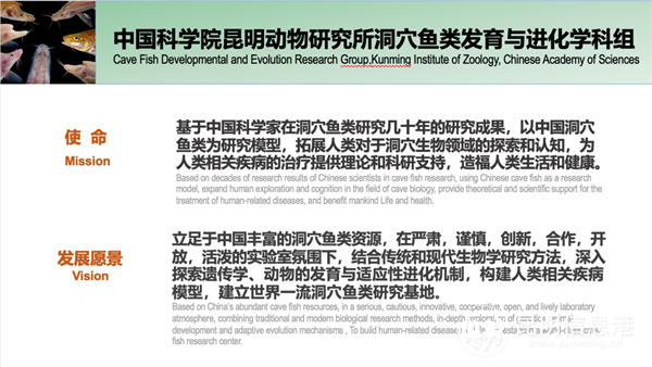 为了保护这些珍贵而独特的洞穴鱼类物种,中国科学院昆明动物研究所于2020年成立了洞穴鱼类发育与进化学科组,研究将立足我国西南丰富的洞穴鱼类资源,基于洞穴鱼类特定表型及生存策略提出科学保护对策,定向发掘洞穴鱼类在科学研究中的重要价值。中科院昆明动物研究所珍稀鱼类保育研究基地现已成功养殖多个类群的中国洞穴鱼类,并突破了部分物种室内养殖及繁育中的关键技术瓶颈问题,为洞穴鱼类的保护奠定了基础。