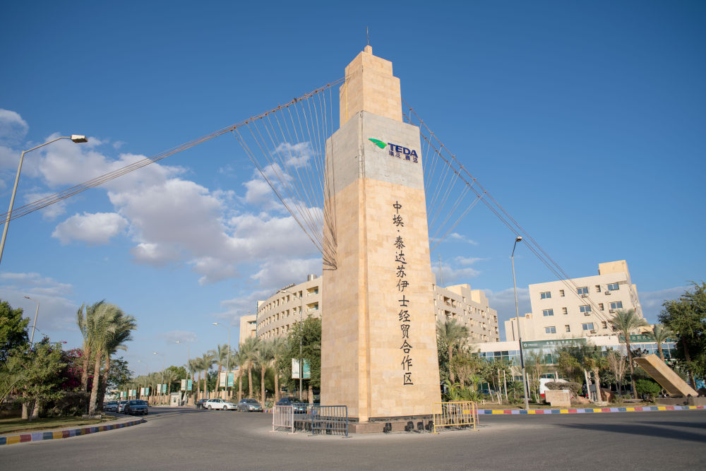 这是2021年1月14日在埃及苏赫奈泉拍摄的中埃·泰达苏伊士经贸合作区大门。新华社记者 邬惠我 摄