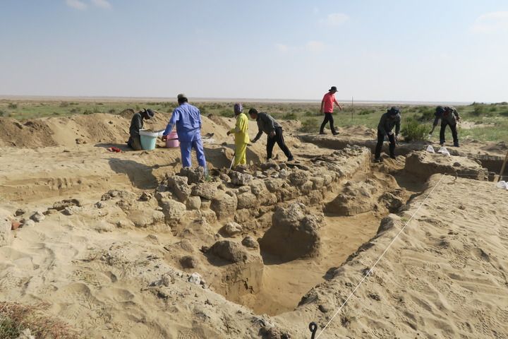 2019年1月12日,中沙考古队员在沙特塞林港遗址现场工作。新华社发(王霁摄)