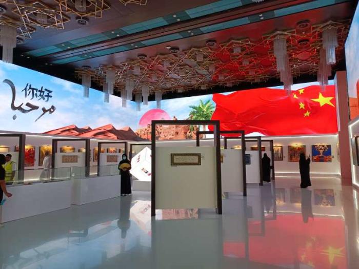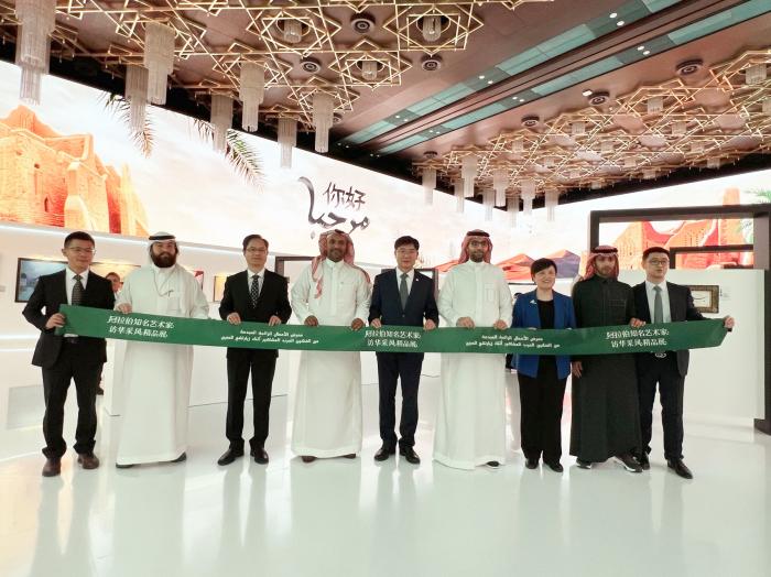 当地时间12月7日,为配合首届中国-阿拉伯国家峰会召开,由中国文化和旅游部、沙特文化部、阿拉伯国家联盟秘书处共同主办的“阿拉伯知名艺术家访华采风精品展”在沙特首都利雅得文化宫开幕。