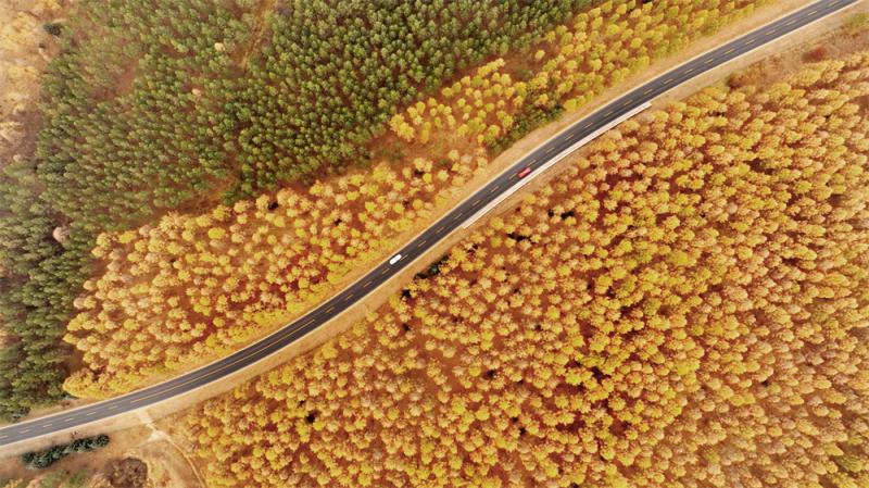 这是2022年10月2日拍摄的河北塞罕坝国家级自然保护区秋景(无人机照片)。新华社发(王龙 摄)