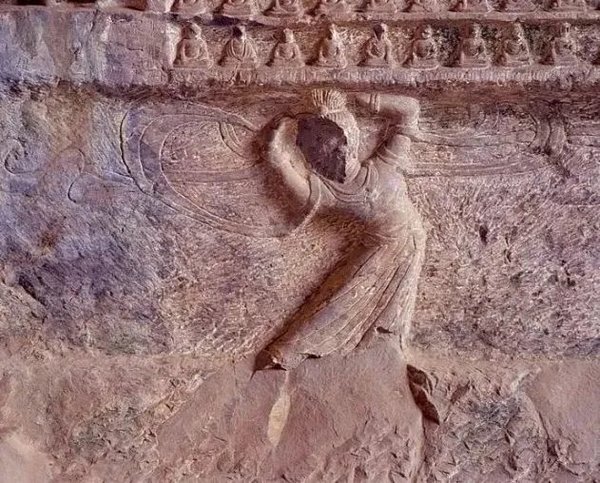 龙门石窟万佛洞北壁胡旋舞舞者形象。