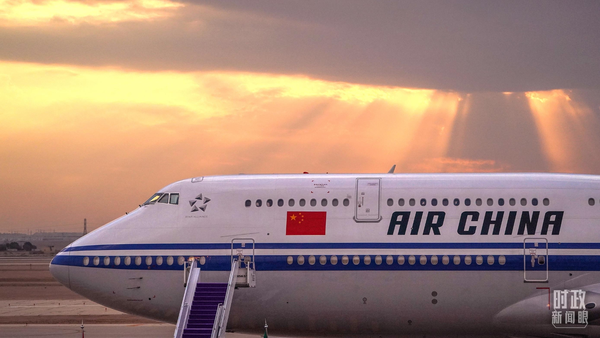 △专机抵达沙特首都利雅得。(总台国广记者李晋拍摄)