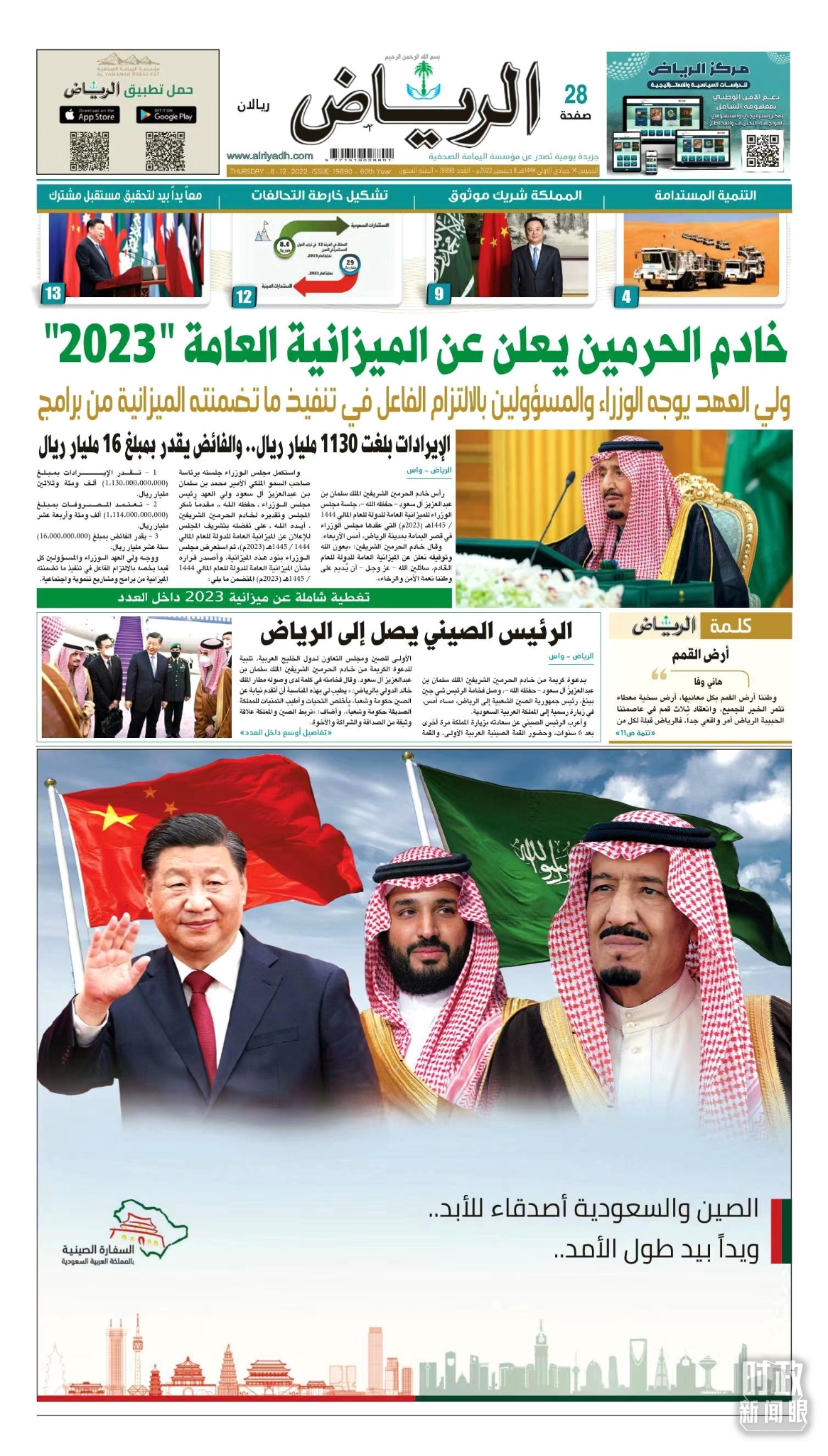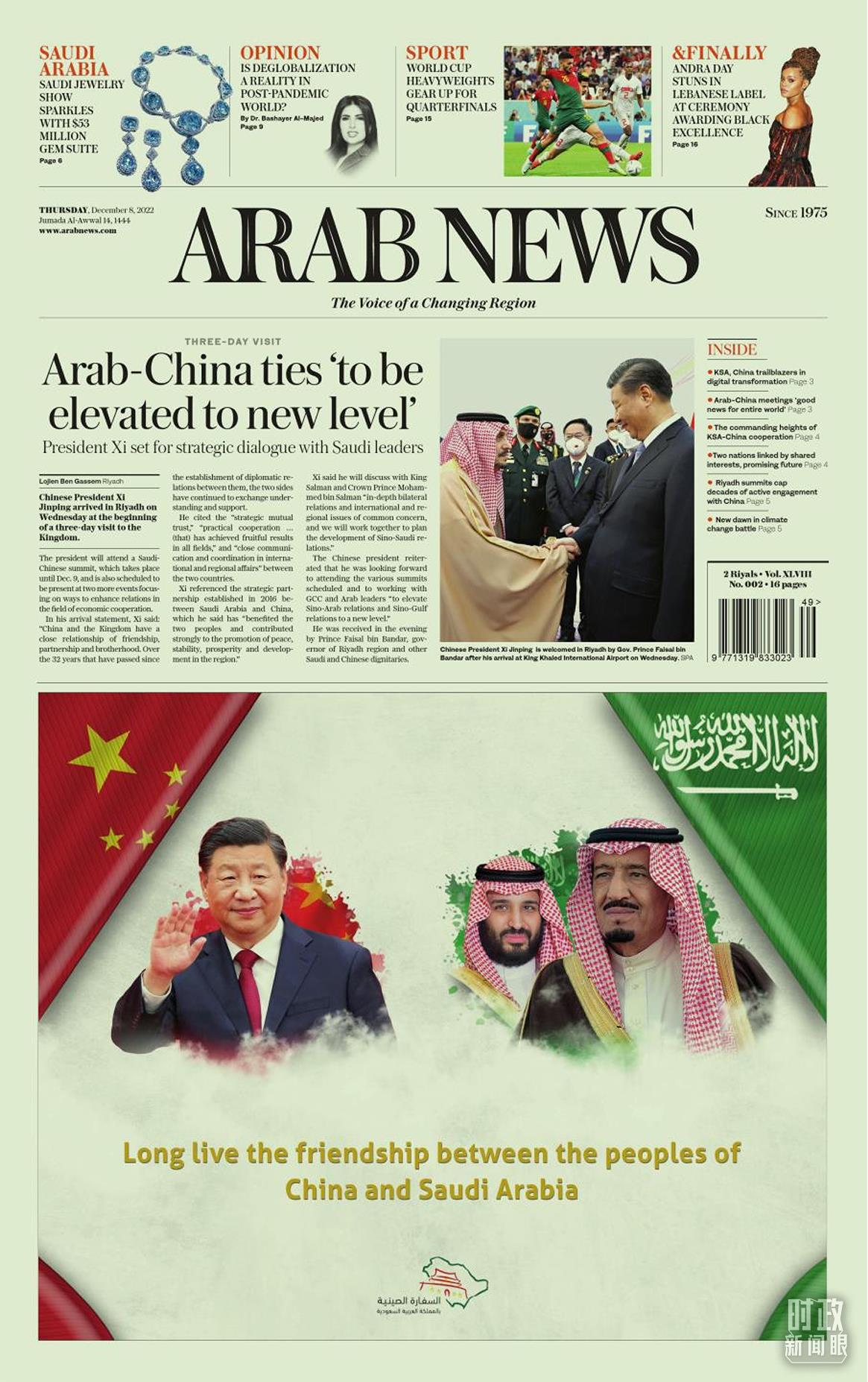 △沙特主流媒体头版对习主席访沙进行报道。