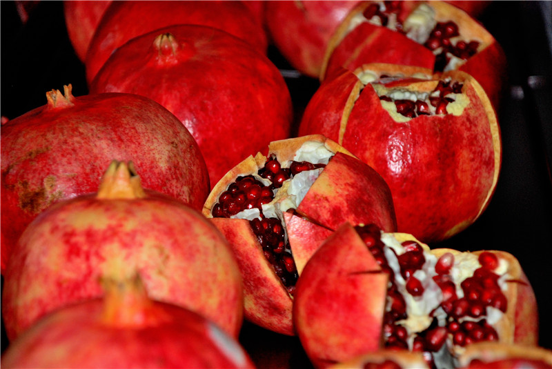 多彩的季节,迷人的画卷。在发基卡、盐水村等石榴种植区,一片又一片的盐水石榴树生机盎然,丰收的喜悦铺满了整个石榴树林。在石榴树下,圆溜溜的石榴就像一个娃娃脸,笑得裂开了嘴,顺手摘下一个,一粒粒晶莹透红的石榴籽儿像一颗颗亮晶晶的宝石,让人馋涎欲滴。