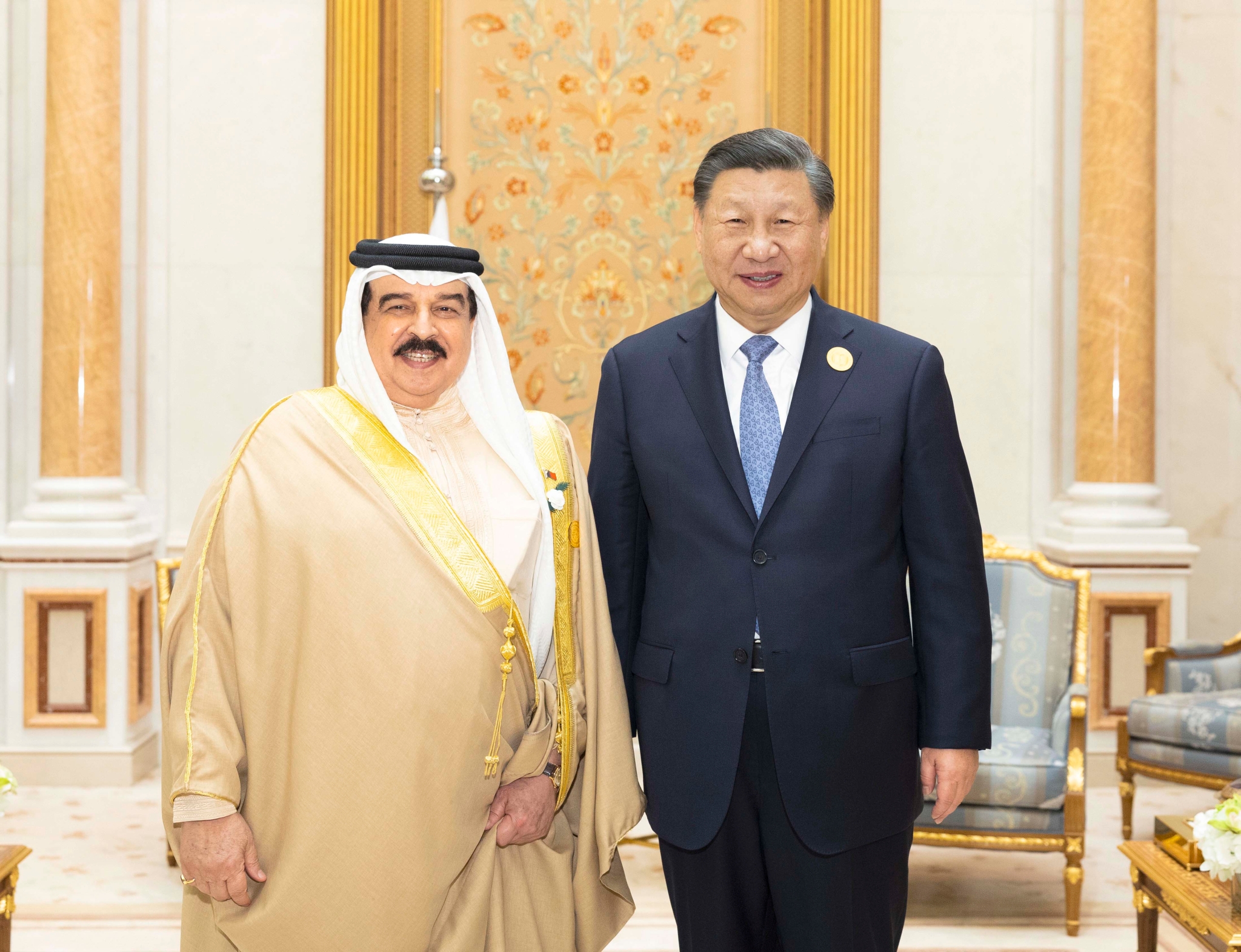 当地时间12月9日下午,国家主席习近平在利雅得会见巴林国王哈马德。