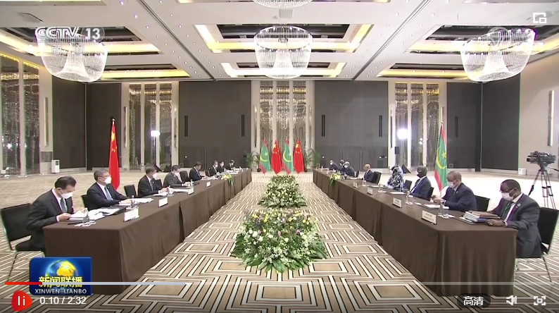 习近平指出,中毛传统友谊深厚。近年来,中毛关系保持健康稳定发展,双方政治互信牢固,务实合作深入,人文交流密切。中方坚定支持毛方走符合自身国情的发展道路,反对外部势力干涉毛里塔尼亚内政,赞赏毛方在涉台、涉港、涉疆、人权等问题上旗帜鲜明支持中方。中方愿同毛方一道努力,推动中毛友好合作关系迈上更高水平。