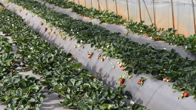 园区的草莓能如此受欢迎,一方面因为基地采取了反季种植的方式,冬季早晚冷热温差大,草莓的糖分、水分含量更高,反季售卖也能获得可观利润,另一方面,还得益于园区独特的种植管理方式。