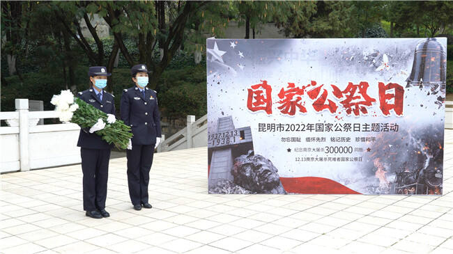 今天是第九个南京大屠杀死难者国家公祭日,昆明市在呈贡区三台山革命烈士纪念碑前举行2022年国家公祭日系列主题活动,教育引导广大干部群众“勿忘国耻、团结奋斗”,奋力当好全省经济社会发展排头兵,为全面建设社会主义现代化国家贡献昆明力量。