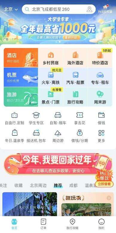 “回家过年”,是中国人朴实的信念。去哪儿数据显示,12月7日以来,春运期间(2023年1月7日-21日)机票预订量大幅增长,环比一周前增长近8.5倍,春运火车票预约量同样增长明显。为方便查询回乡政策,去哪儿上线春运返乡政策查询功能,帮助旅客计划好回家行程。