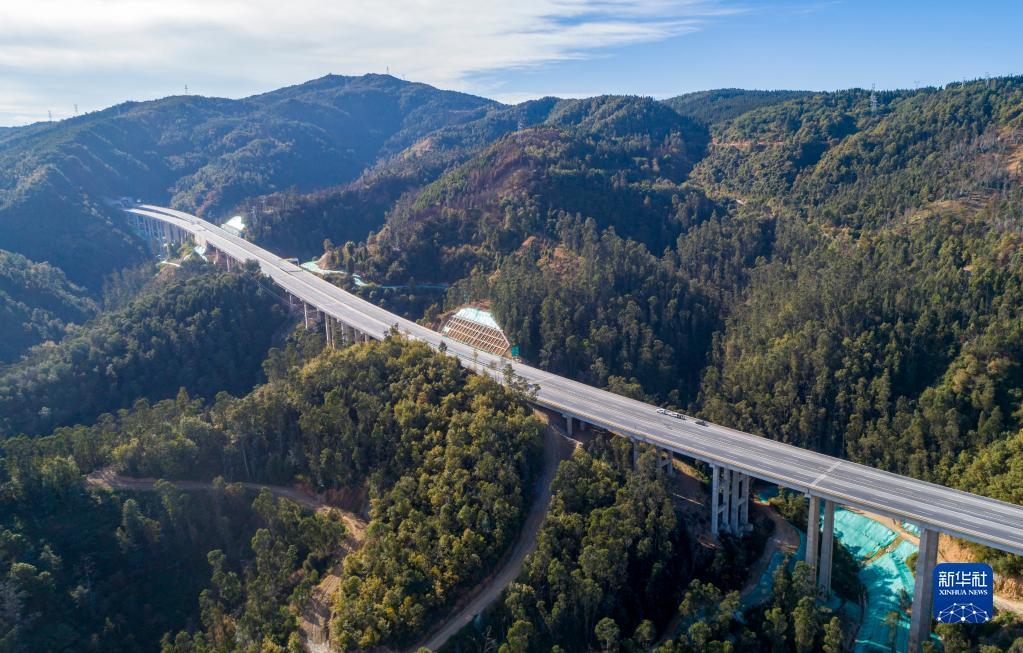 这是12月8日拍摄的新昆楚高速昆明入城段景象(无人机照片)。新华社记者陈欣波/摄