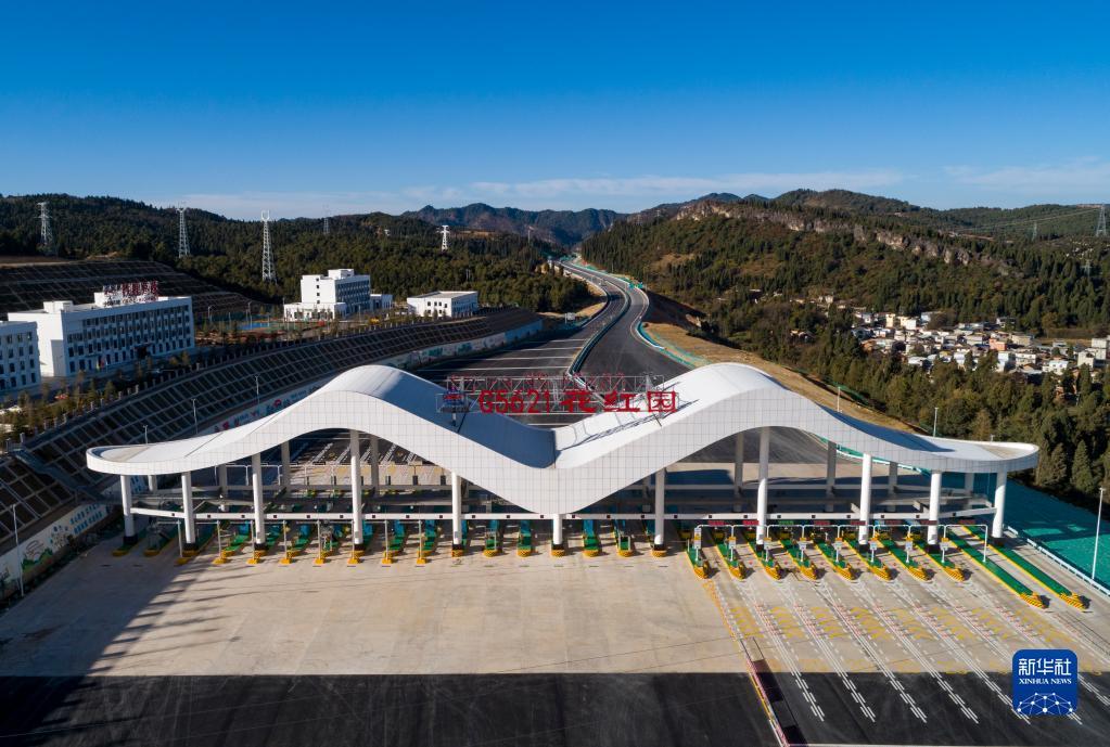 这是12月8日拍摄的新昆楚高速昆明入城段花红园收费站(无人机照片)。新华社记者陈欣波摄