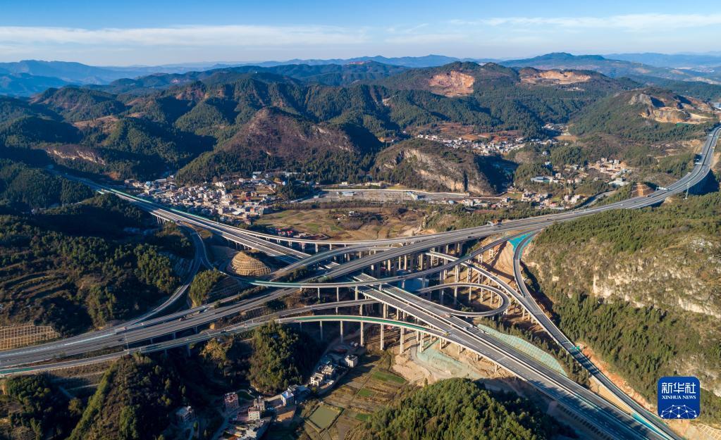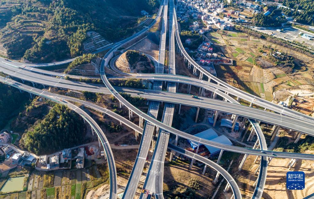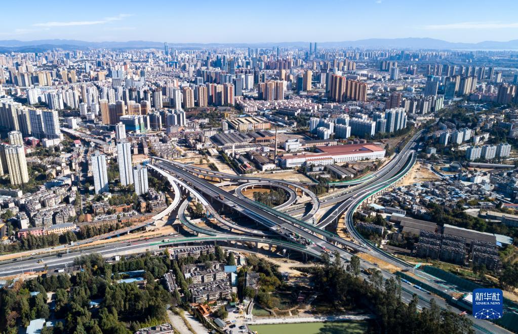 这是12月8日拍摄的新昆楚高速昆明西北绕城枢纽立交(无人机照片)。新华社记者陈欣波/摄