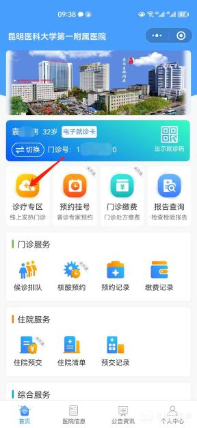或登录昆明医科大学第一附属医院公众号,点击“导诊”按钮,通过线上发热门诊进入