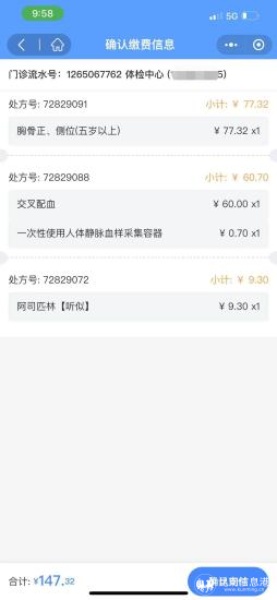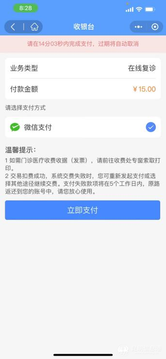 5.在填写病情主诉信息并确认预约信息,去到收银台。