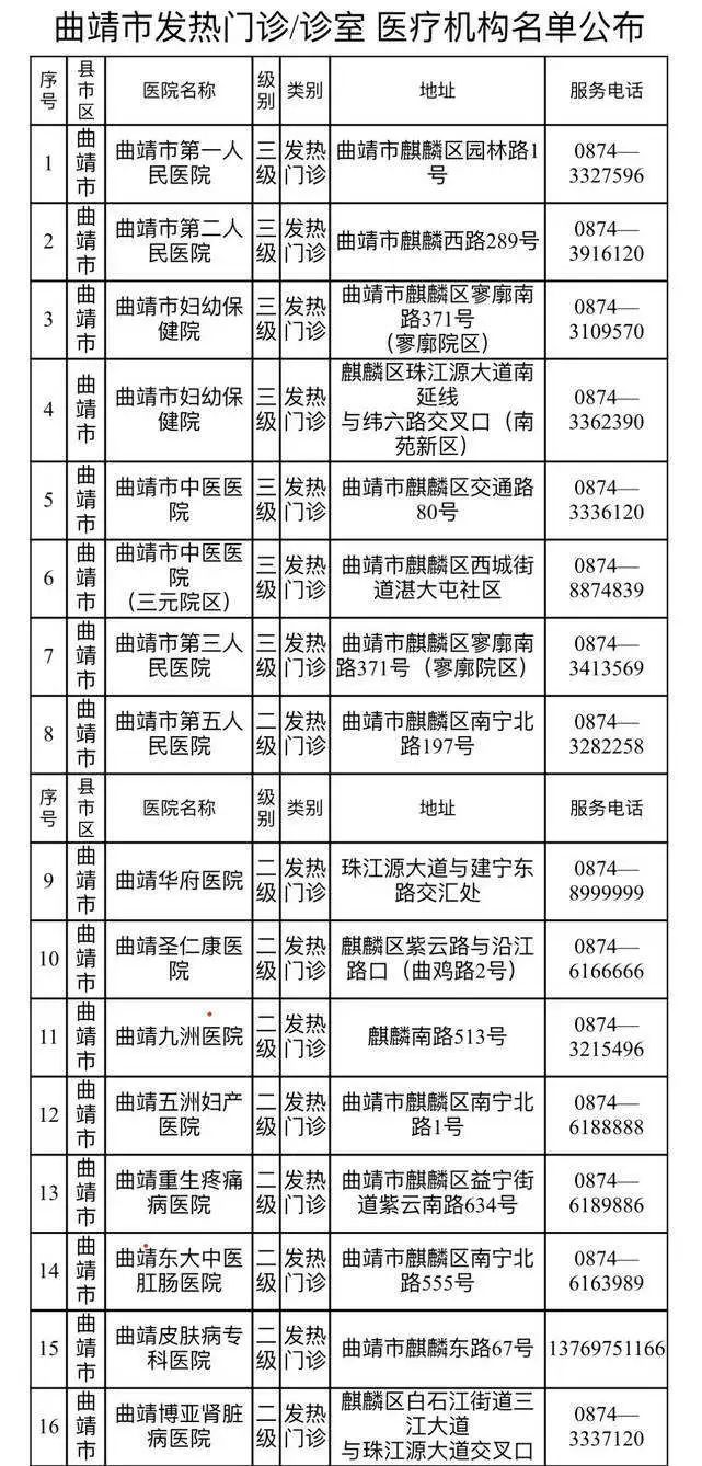 昆明市公示第二批发热门诊医疗机构名单