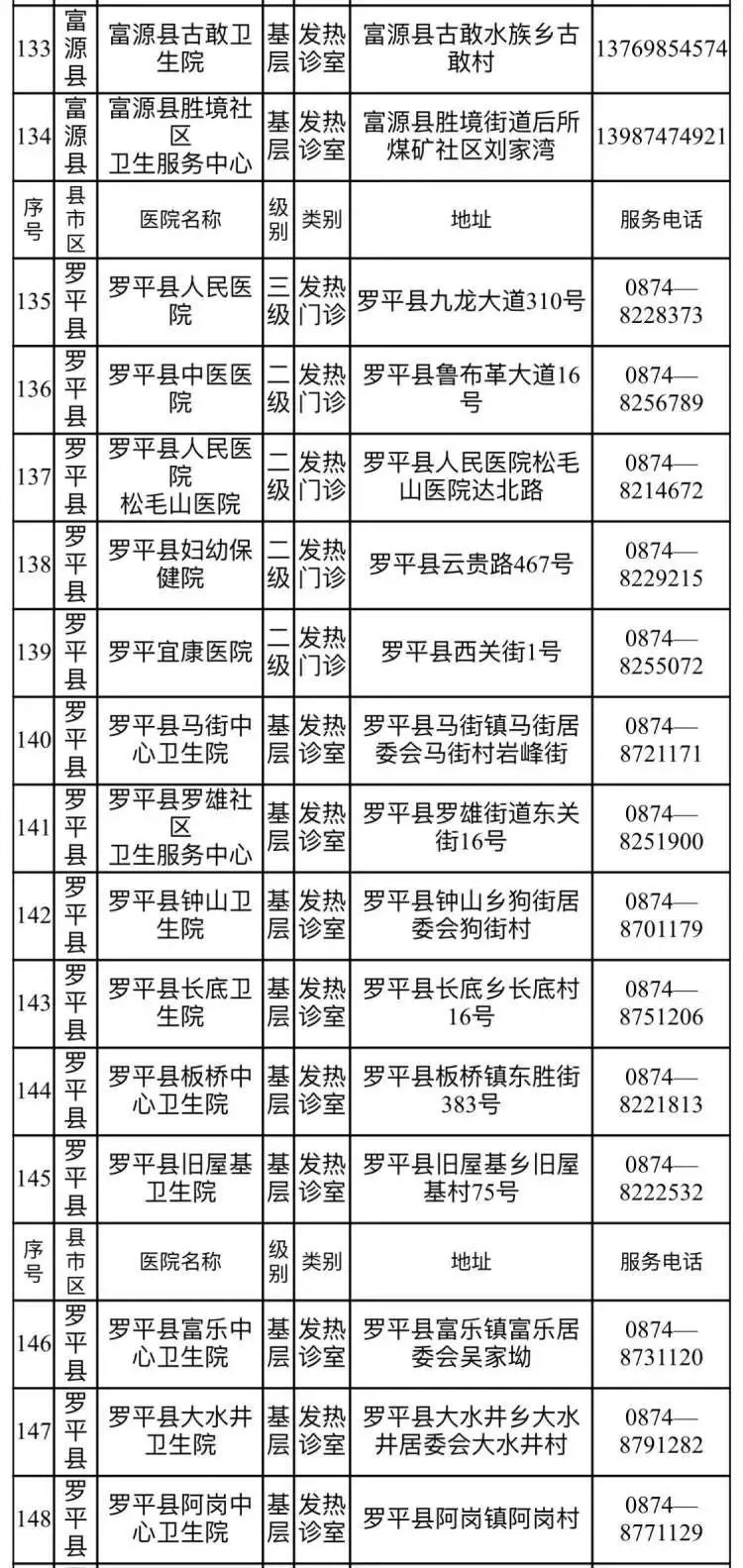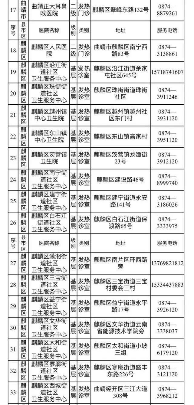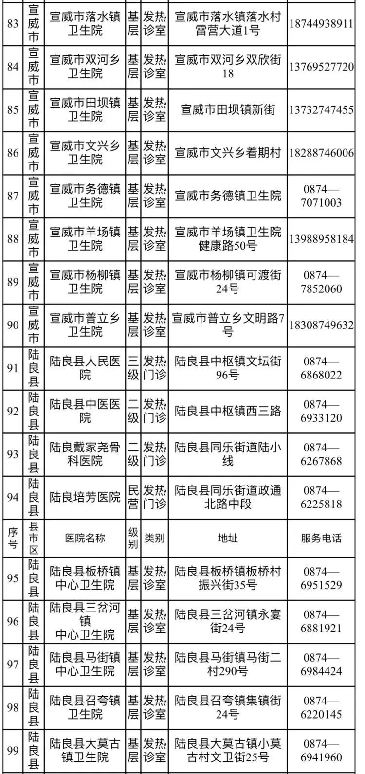 昆明市发热门诊(诊室)医疗机构名单(第三批)