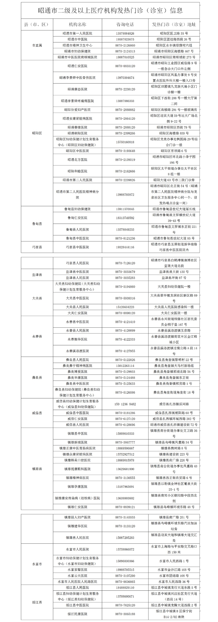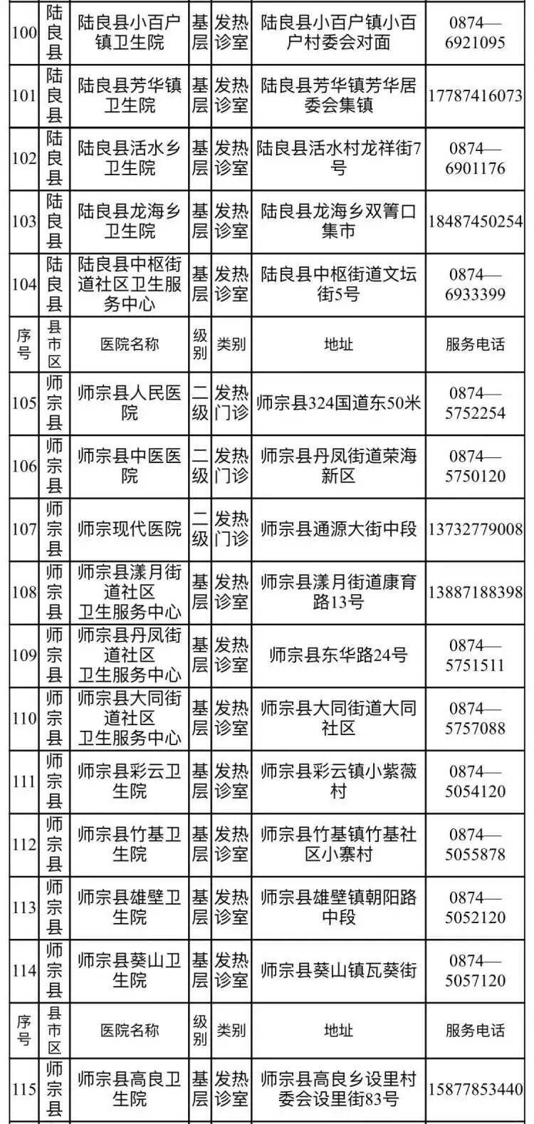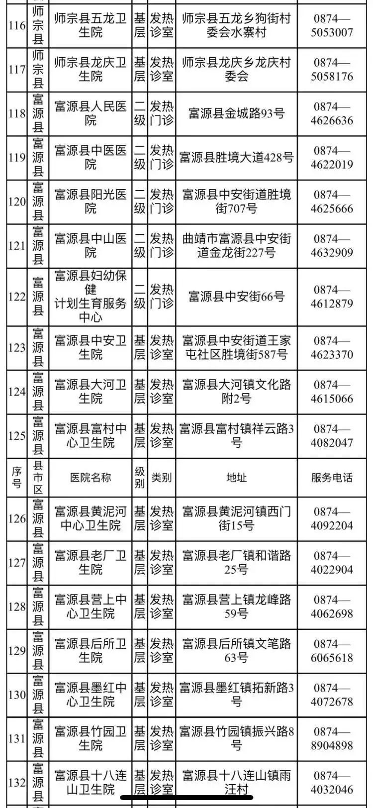 昆明市发热门诊(诊室)医疗机构名单(第三批)