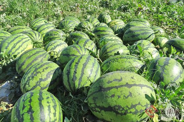 在下甸村昌宁县勐哈农业开发有限公司西瓜种植基地内,西瓜采摘正热火朝天,一个个圆滚滚的西瓜被采下,堆放在一起,然后装入纸箱中等待运往北京、东北。由于西瓜特别大,一些纸箱都被挤得变形。拿过一个西瓜,随着小刀划过的清脆的声音,让人口水直流。“砰”的一声轻响,红红的瓜瓤带着飞溅的汁水露出来,切下一块放入口中,入口冰凉、清脆、多汁、香甜,让人浑身舒爽,在穿短袖的湾甸坝内如临夏日。