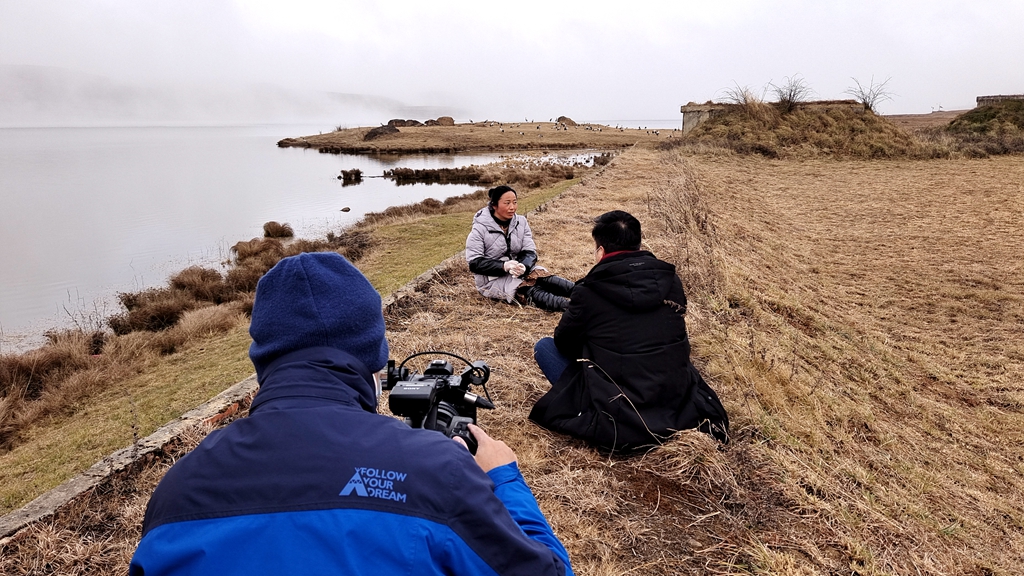 12月13日到15日,央视中国国际电视台英语频道记者到大山包采访报道高原精灵黑颈鹤及高原风光,向全世界展现黑颈鹤栖息越冬情况。