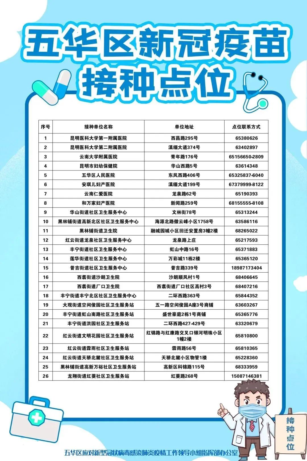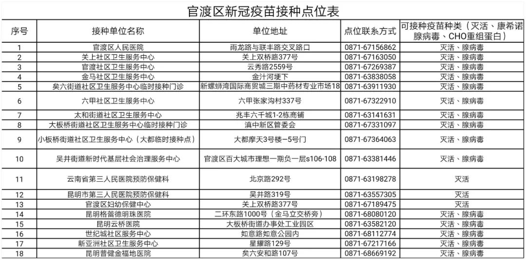 近期,昆明哪些地方可以接种新冠疫苗?小编特意整理了五华、盘龙、西山、官渡、呈贡新冠疫苗接种最新点位及部分可接种的疫苗种类赶紧收藏!