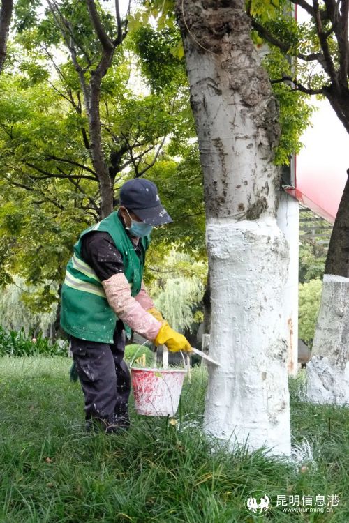 涂白主要是针对全市乔木开展,涂白高度统一为1.2米,涂白不仅可防止树干在冬季因昼夜温差过大产生冻害,且对于在树皮缝隙越冬的病菌虫卵起到灭杀作用,可有效减少来年病虫|的发生量。