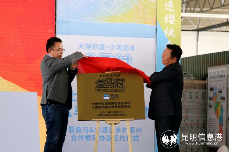 (图:七彩番茄盒马村在大理州弥渡县挂牌)