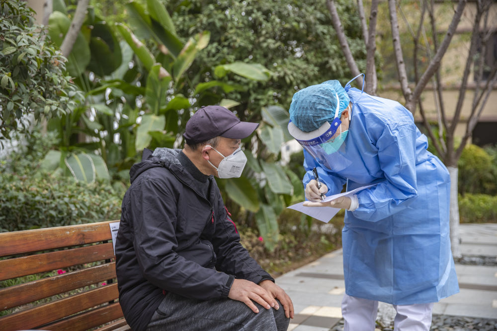 12月15日,在重庆市两江新区康美街道筹备二组社区,社区卫生服务中心的医务人员核对上门接种新冠疫苗的老人信息。新华社记者 黄伟 摄