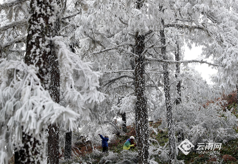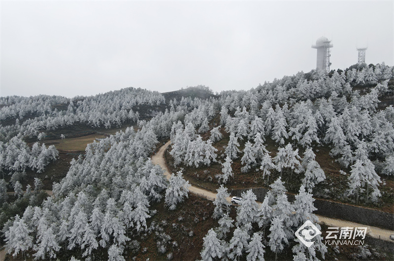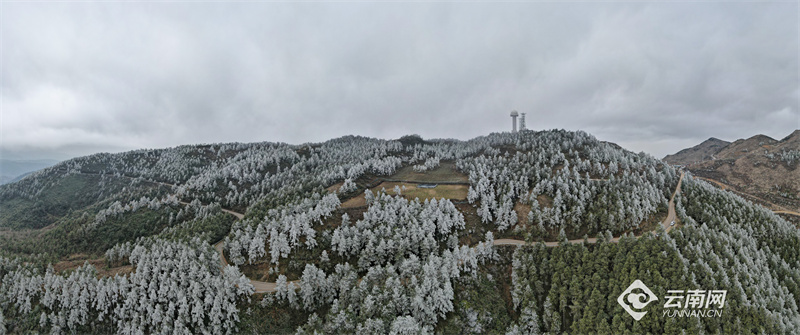 【高清组图】受冷空气影响,昆明呈贡梁王山现雾凇奇观
