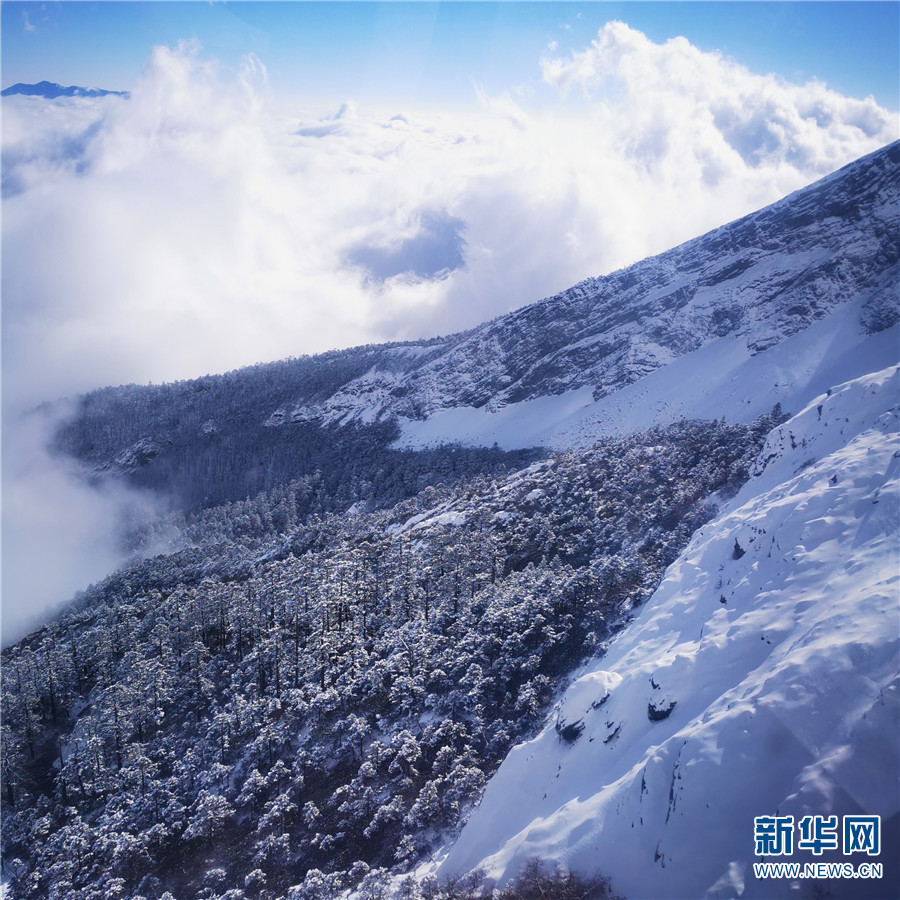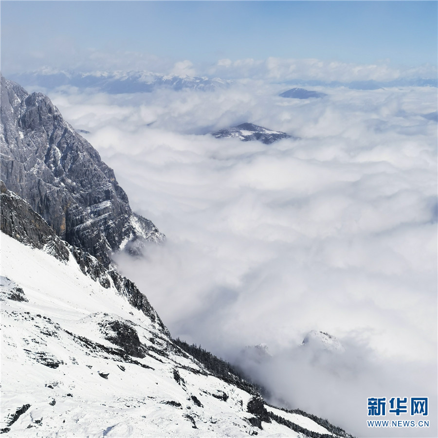 玉龙雪山的白雪与云海(12月18日摄)。新华网发(杨正彪 摄)