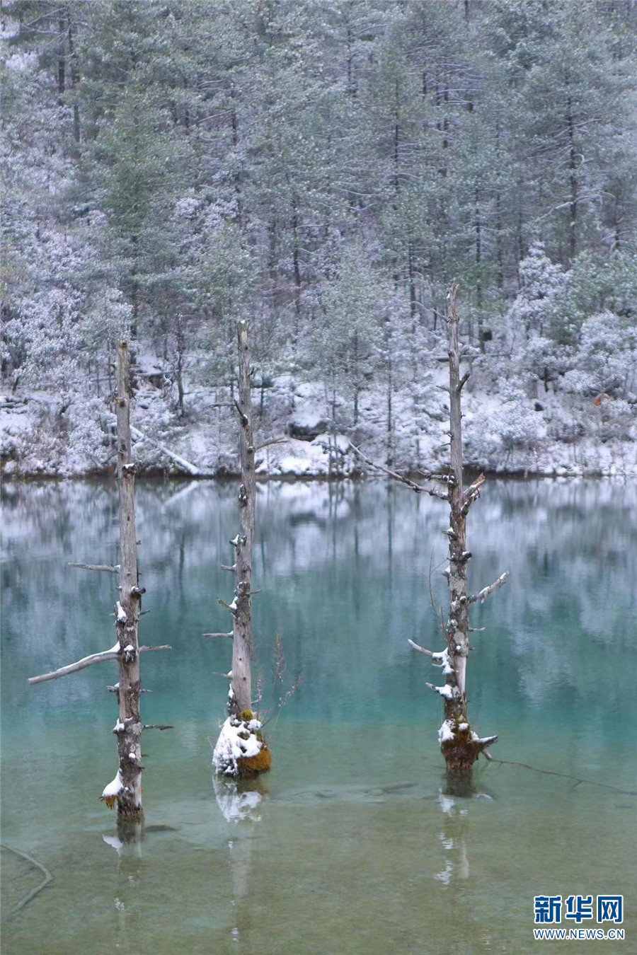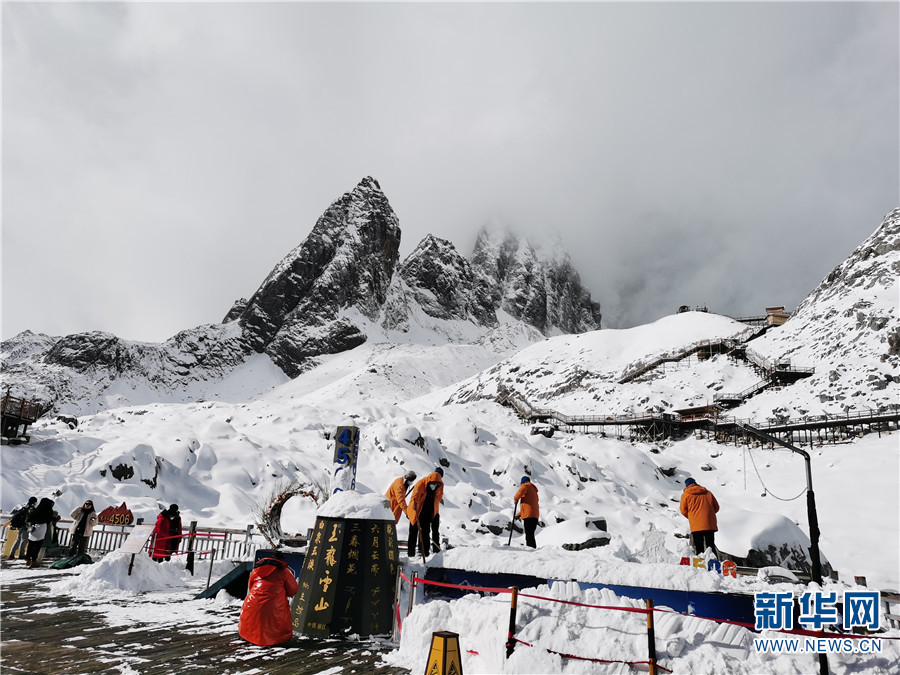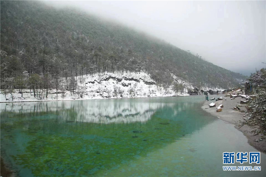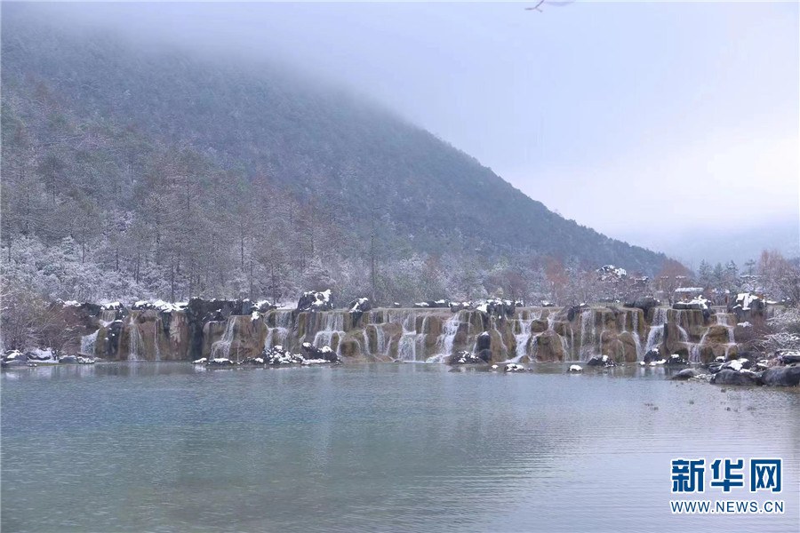 12月17日下午,丽江玉龙雪山迎来降雪,山上瑞雪飘扬,处处银装素裹,云杉坪的绿树与白雪共舞,绵绵的白雪点缀蓝月谷,美成一幅画。(完)