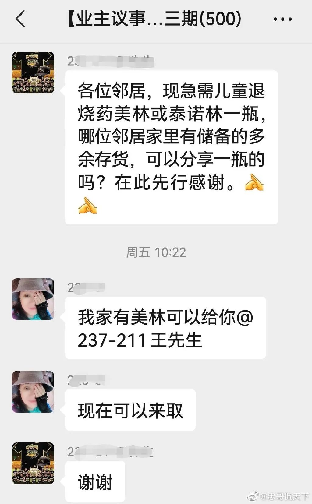 声音来源 禹女士:“急需体温计或者退烧药,以及一些防疫物品的,只要在群里发出了求助,如果大家能帮得上忙的,邻居之间都会及时伸出援手。我当时是非常感动的,因为觉得在这种特殊的时候,邻居之间都能够互相帮助。”