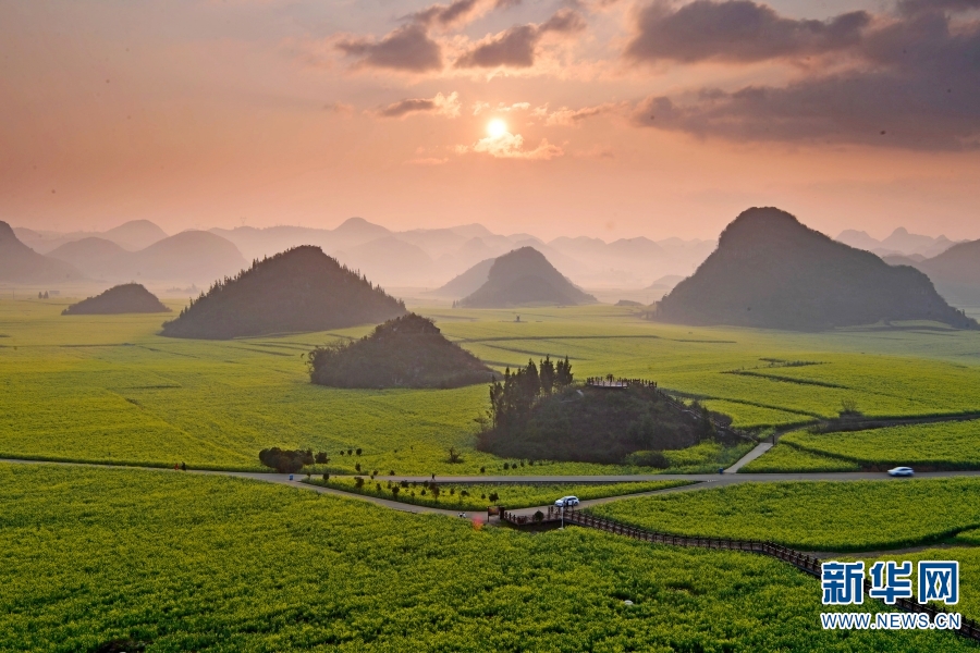 罗平油菜花田日出(资料图)。新华网发(罗平县委宣传部 供图)