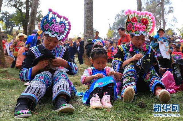 楚雄彝族自治州永仁县彝族赛装节(2019年2月19日摄)。新华网 赵普凡 摄